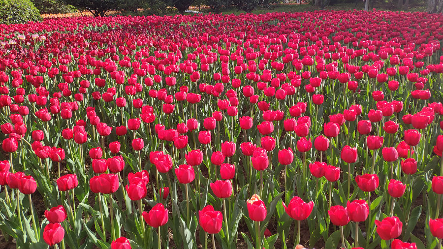 这是我在国庆节里在崇明的郁金香花展上拍的。由于疫情原由,这次大家只能呆在上海所以国庆期间崇明的客流量特别多。花展上的人头攒动,旁边的郁金香仿佛置身于净土之中。热闹是人们的,花儿们只管整整齐齐地站着队列的独自美丽。风轻轻的吹动花瓣,它们微微的摇摆,在阳光的交相辉映下显得格外的妩媚多姿,它使我陶醉,使我沉迷。闻着沁人心脾的花香,不经驻足于此,拿手机拍下了这美丽的一刻。