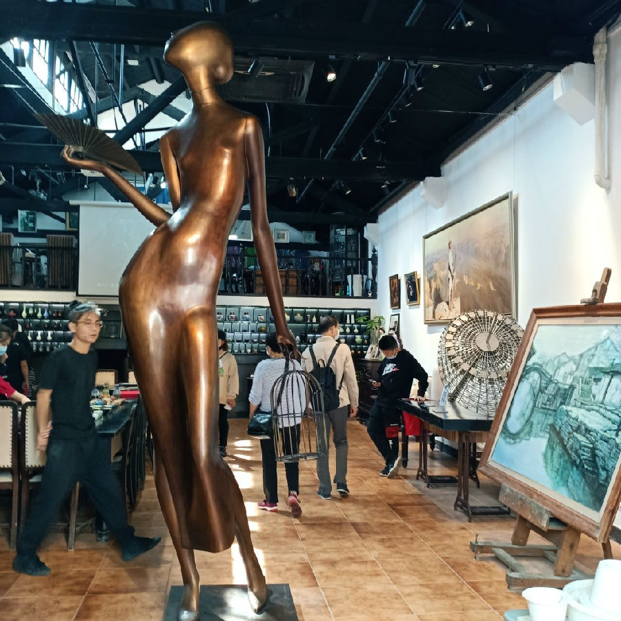 13.《东方少女》国庆假期期间我随父母去了黄浦区泰康路的田子坊,因为假期田子坊内人流很多,在随着人海的旅途中我被陈逸飞工作室的门口所摆放的雕塑所吸引了。等我进入里面观赏时,我看见简介所说,这座雕像叫“东方少女”,是已故艺术家陈逸飞生前所创造的处女作。它高3.15米,重300公斤,所描述了一位上世纪30年代的上海少女,身穿旗袍,持着扇子,提着鸟笼,身材妙曼,额头轻扬的样子,展现了东方女性的优雅,也表达出中国旗袍的柔美温婉,浪漫与写实相融合,中西艺术对于美的完美阐释。
