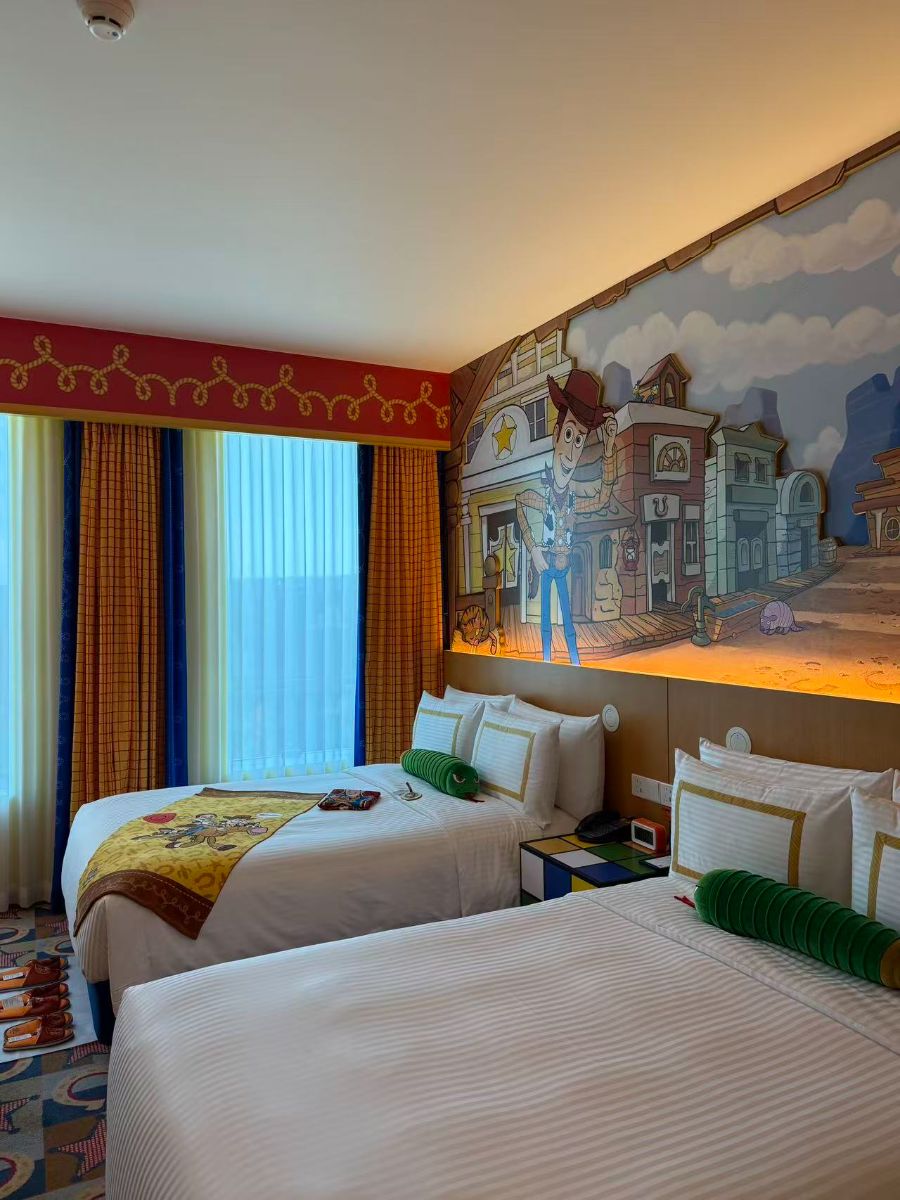 在学校组织下,我们走进了迪士尼玩具总动员酒店,这场企业参观让我收获颇丰。一踏入酒店,仿佛闯入童话世界,巨大的巴斯光年模型、色彩鲜亮的玩具主题装饰随处可见,细节处尽显沉浸式设计巧思。