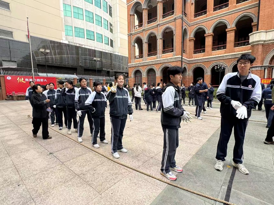 操场上传来震耳欲聋的呐喊声,我们班的拔河比赛正酣!队员们脚抵着脚、肩并着肩,身子后倾如拉满的弓,双手紧紧攥住粗麻绳,指节因用力而发白。